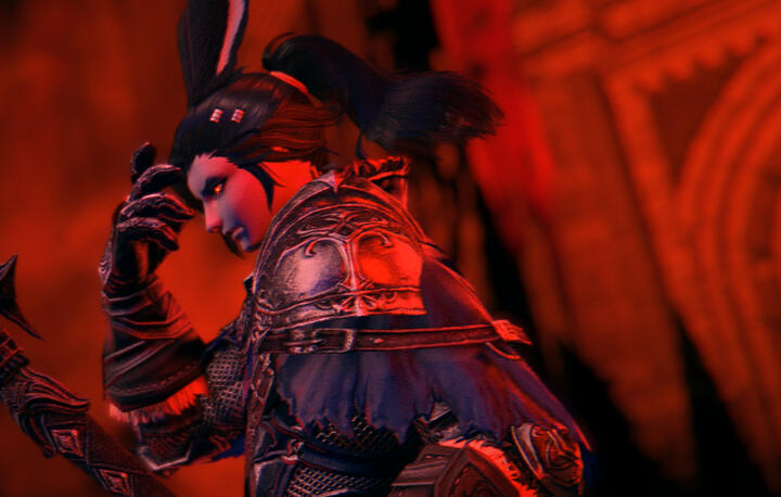 APPEARANCE . A tall man with light gray skin, long pitch black hair usually tied up, and sharp amber eyes. He has long fluffy ears, leporine paws (usually covered), and a small cotton tail behind him. He prefers armor and ornate clothes.AETHER . Umbral-aspected. Through aether-vision, it may look like the aether itself is enraged, whirling around him violently.PERSONALITY . Plays along, most of the time. Usually courteous. When not in the mood, he's cut-throat, annoyed, and serious.FAMILIAR . A crow trained to spy on enemies and fetch items for him.OTHER . He has the bad habit of smoking.VOICE . JP Voice, ENG Voice, Singing: Masuda Toshiki/Howard Wang. He has a trained way of speaking without emotion, but doesn't try to come off as cold. He sings to himself when he's alone.